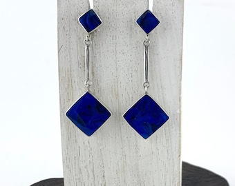 Blue Earrings, Blue Paua Earrings, Abalone Shell, Sterling Silver, Square Stud, Square Drop Earring