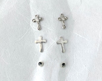 Cross with lines, plain cross, yin yang, yin-yang, yinyang sterling silver, 3 three pairs minimal jewellery