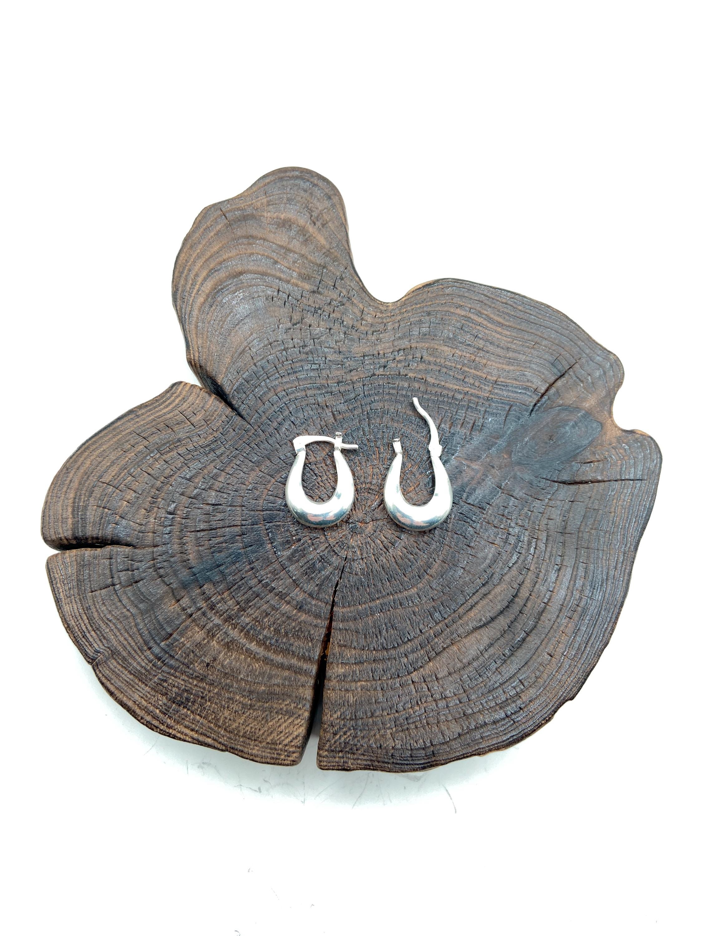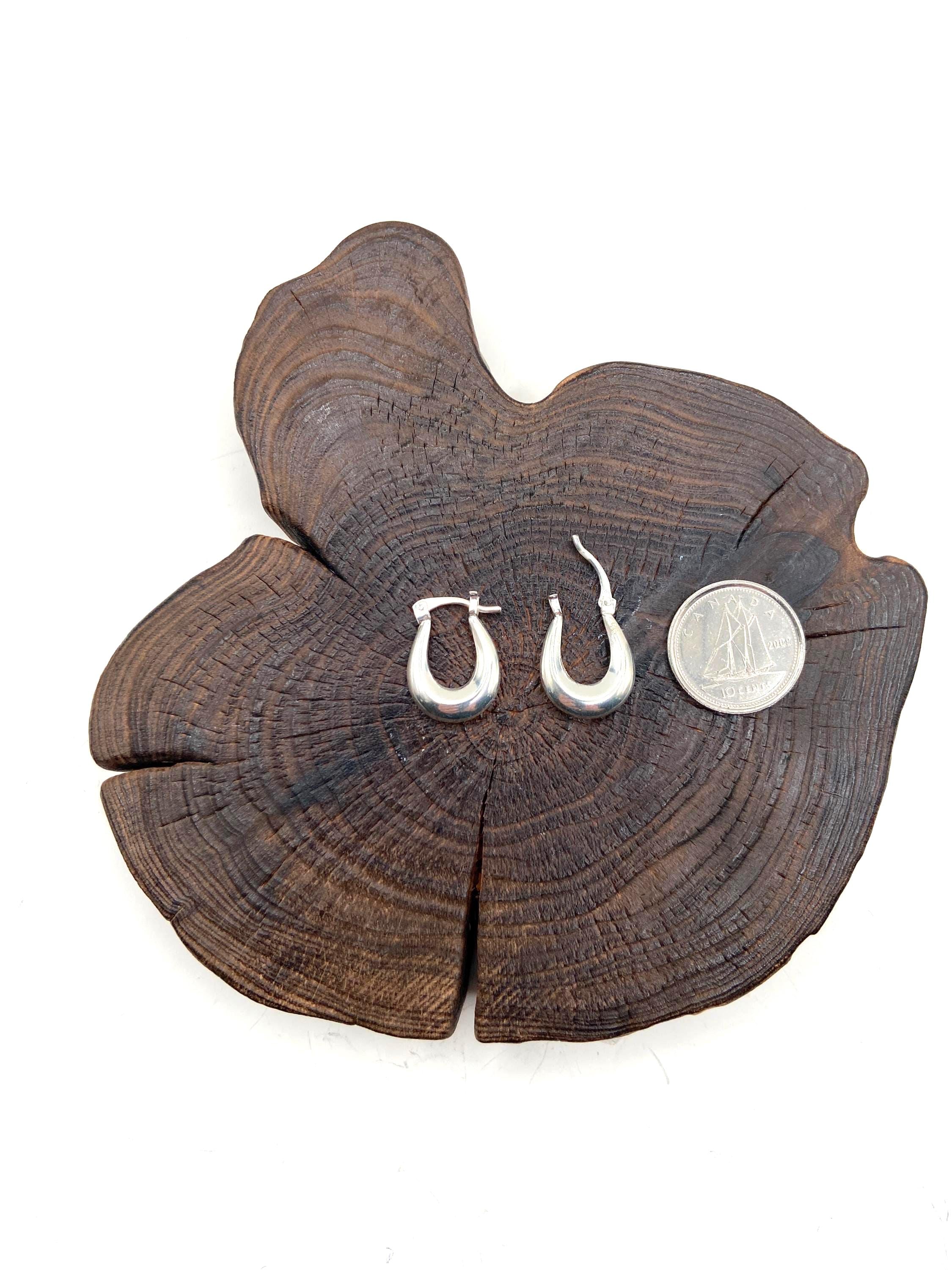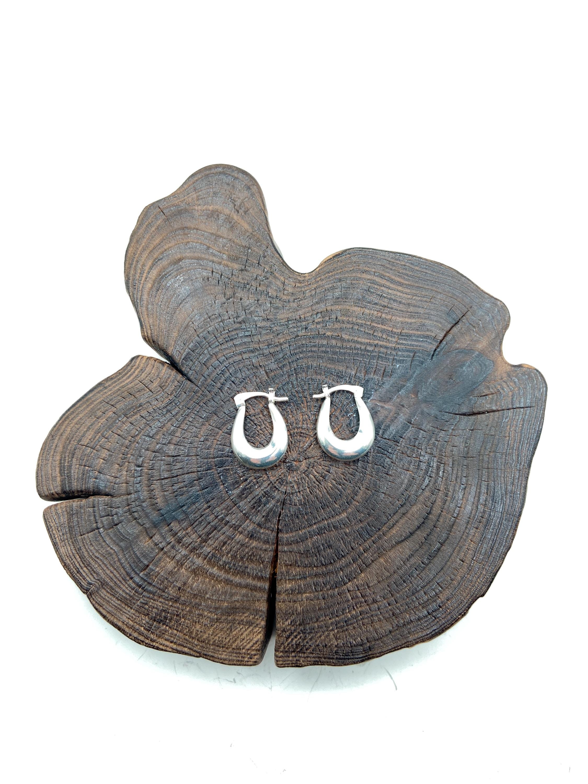 Sterling silver curved, puffed teardrop-shaped hoop earrings.(slightly thicker at the bottom, narrowing toward the top)