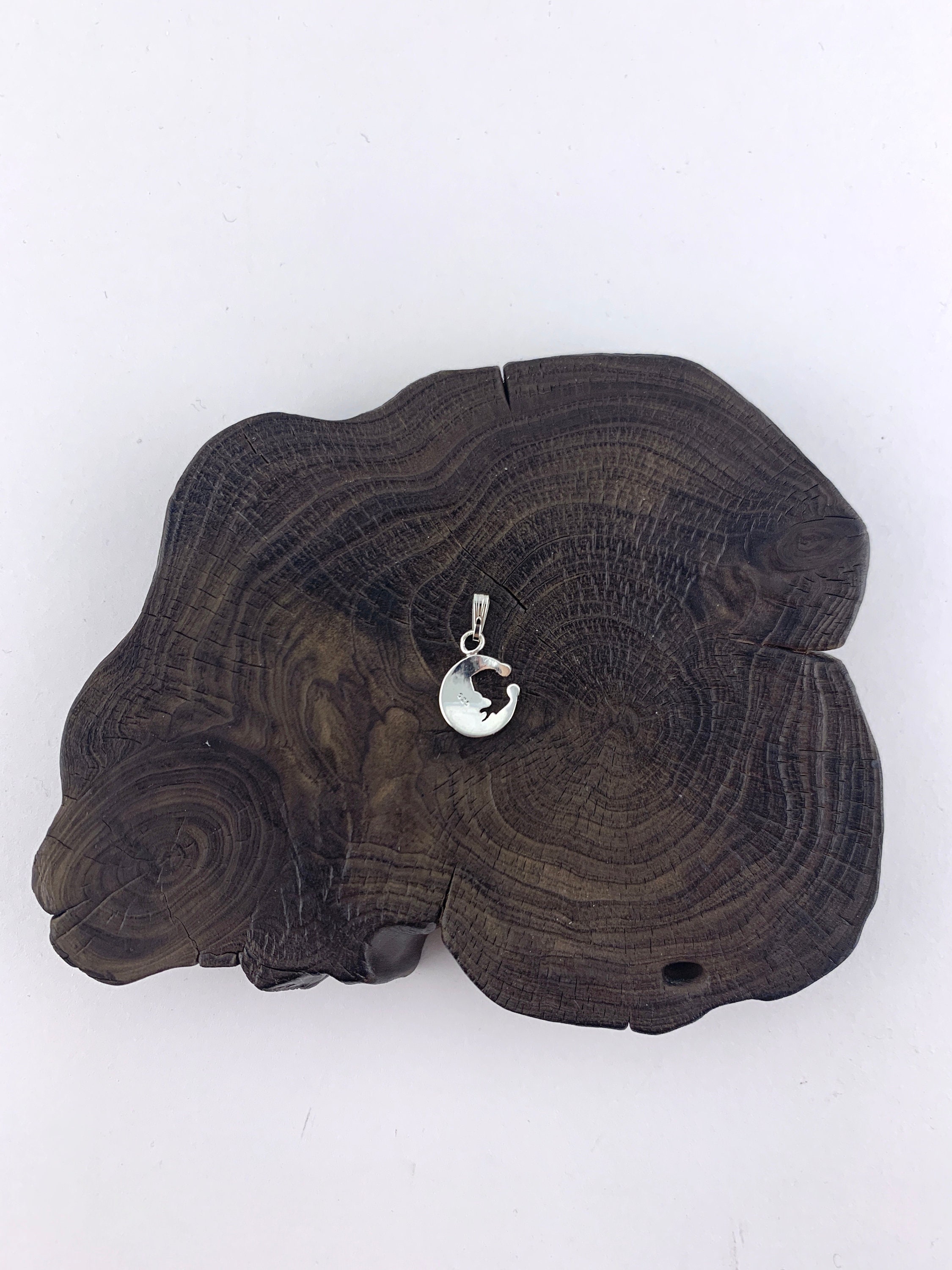 Vintage Moon Pendant: Cute Sleeping Crescent Moon Pendant in Sterling Silver.