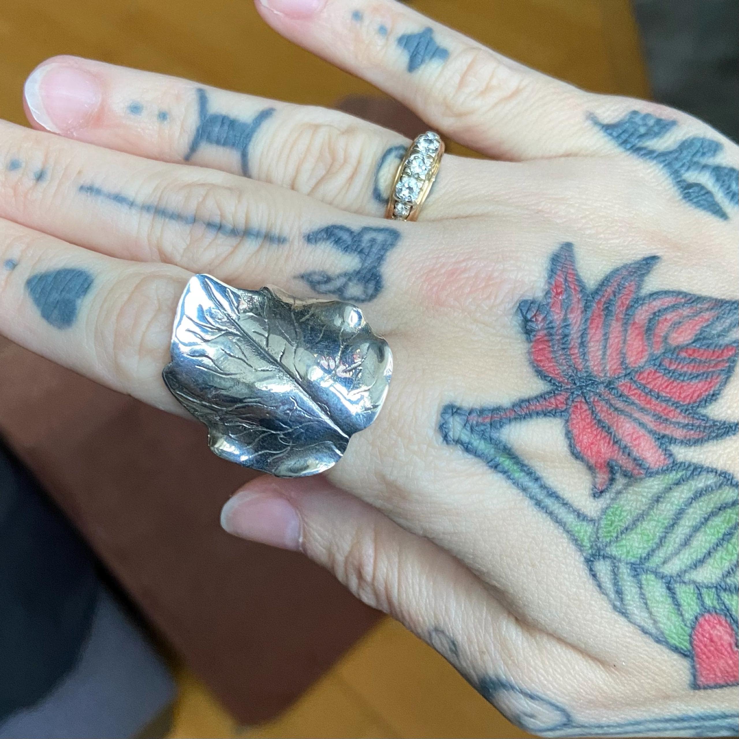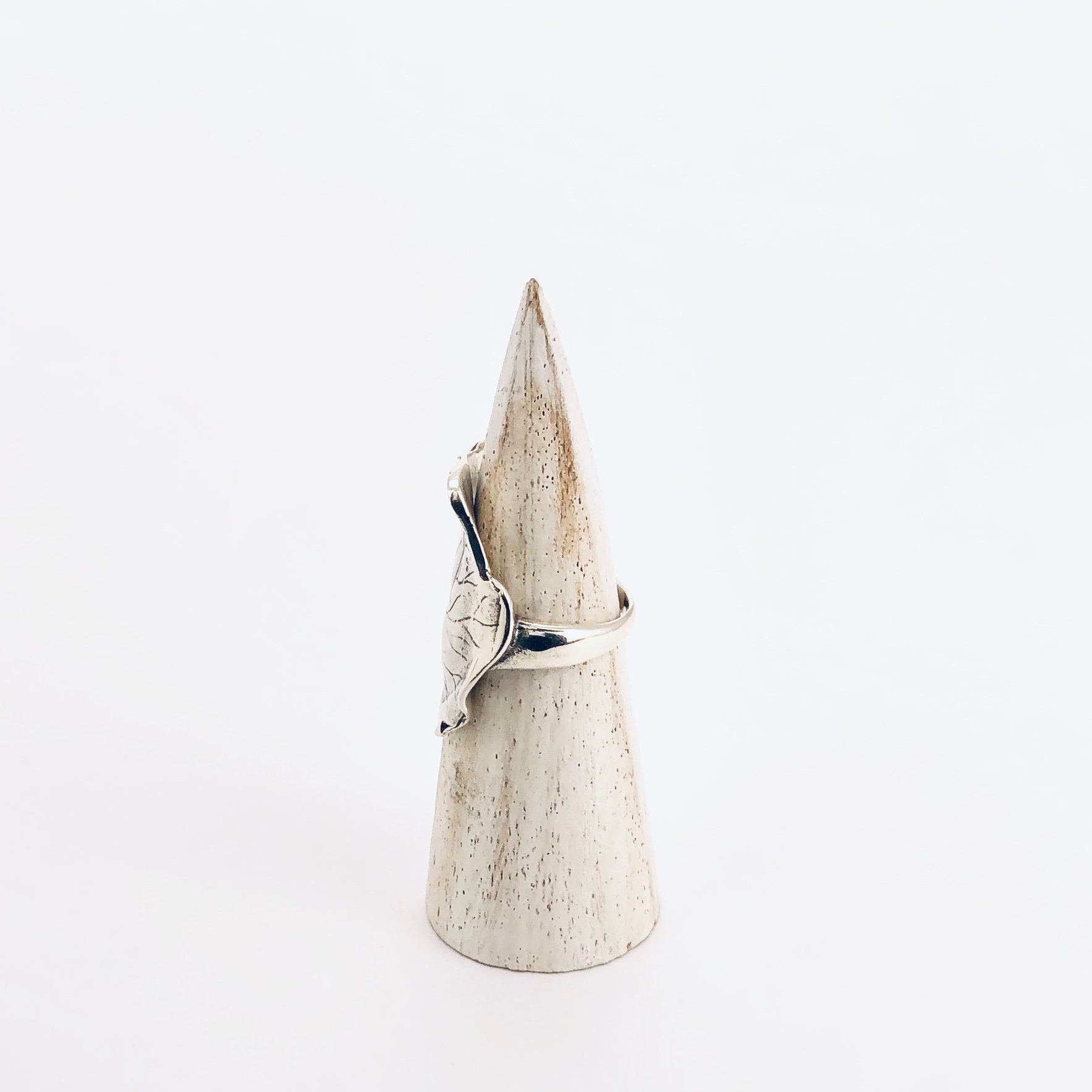 Large thick and sturdy Sterling Silver leaf ring.