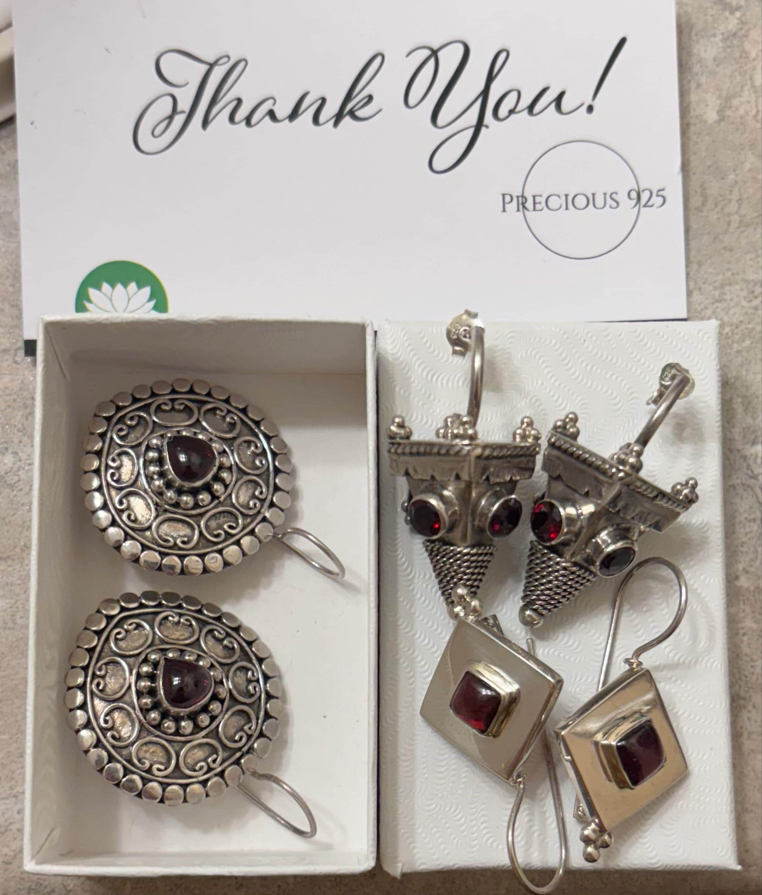 Red Garnet Cone Shaped Sterling Silver Earrings.