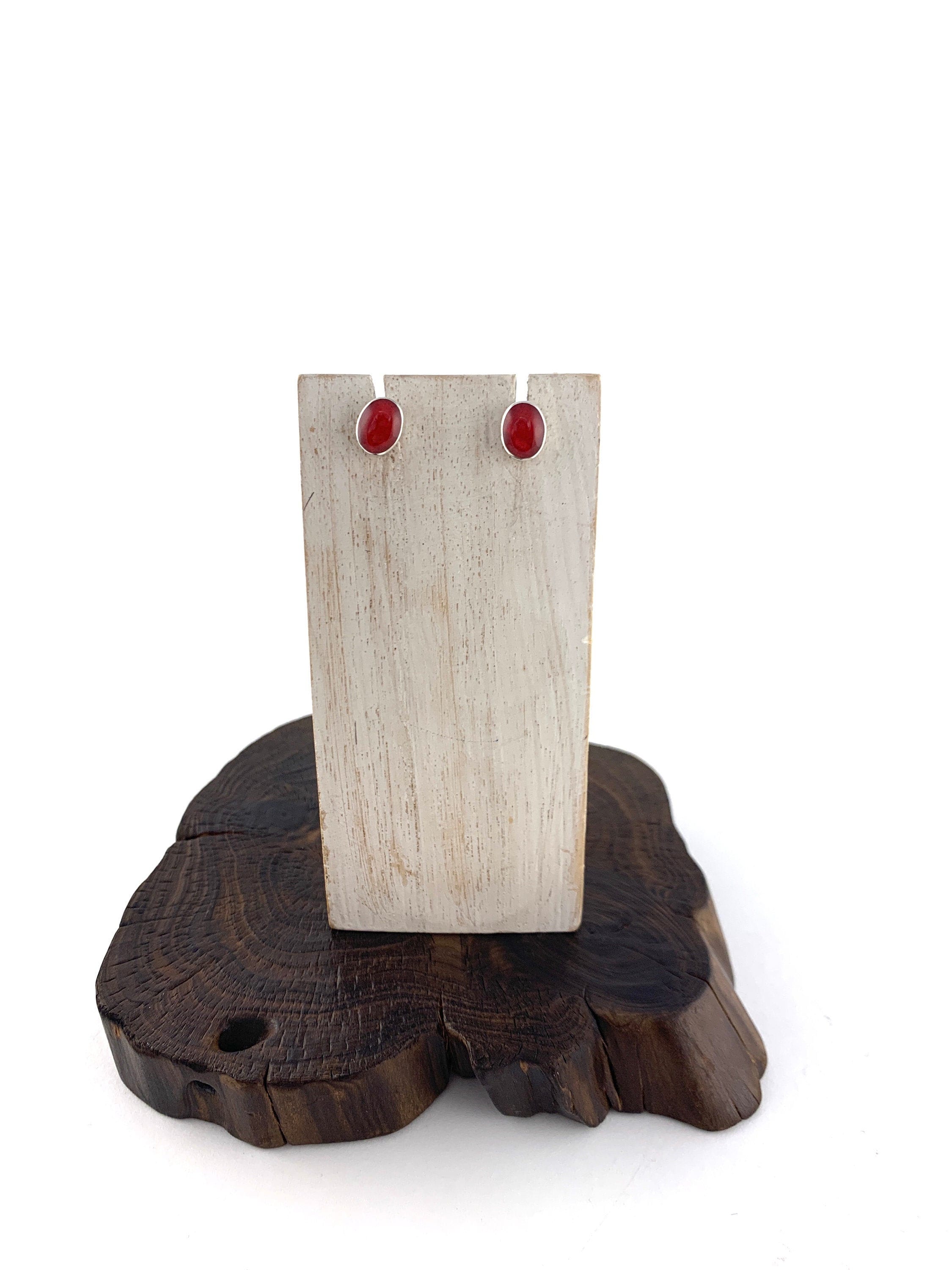 Red coral oval studs earrings ,sterling silver 925, clean look