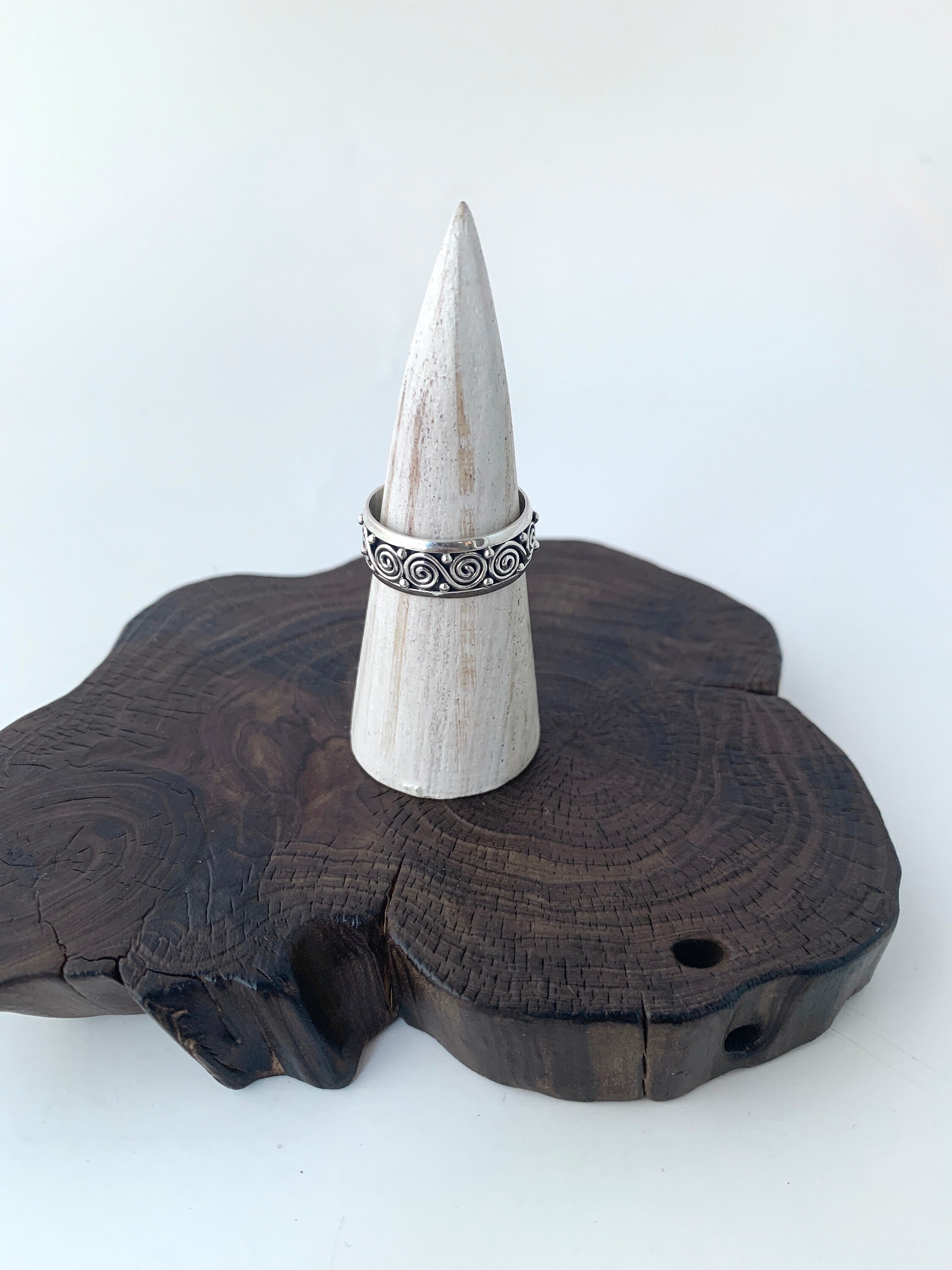 Sterling Silver band ring with Silver Dotted Design and Swirl Design.