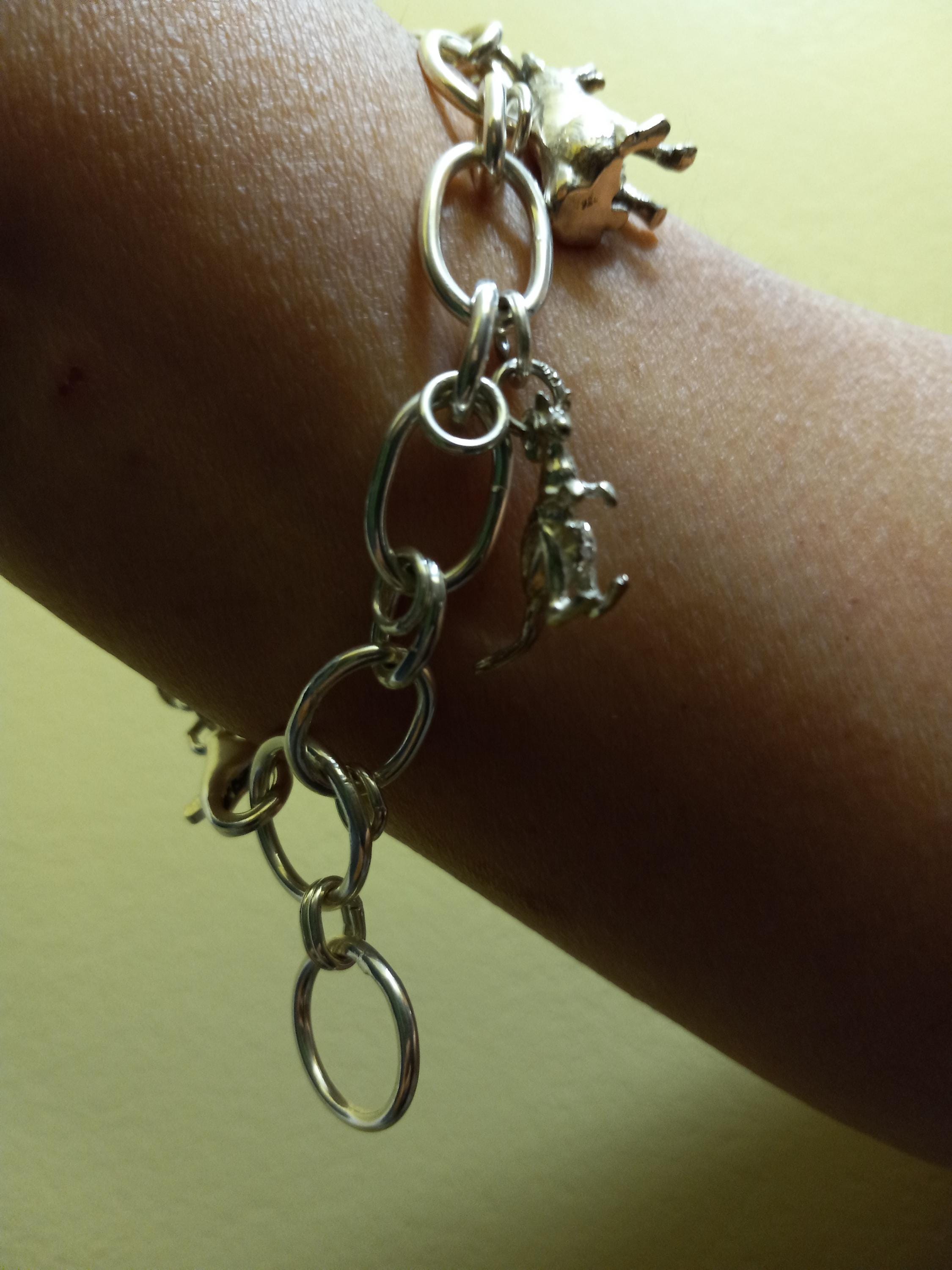 I love the sterling silver charm bracelet's big links and big clasp (I added my own sterling charms). No more fiddling to put on my bracelets! Unique and well priced. Item arrived promptly. I highly recommend this vendor. Would shop here again.